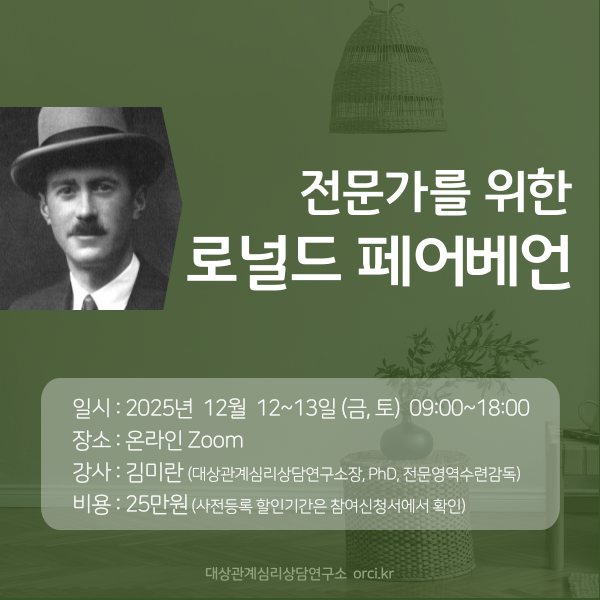 # 본 강좌에 참여시 한국상담학회 연수시간, 대상관계상담심리사 자격을 위한 교육이수시간으로 인정됩니다.